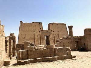 Le temple de Horus à Edfou est l’un des plus grands et mieux conservés temples de l’Égypte antique. Sa construction débute sous Ptolémée III en 237 av. J.-C. et s’achève sous Ptolémée XII en 57 av. J.-C. Il fut édifié pour honorer Horus, divinité faucon, et joua un rôle majeur dans les fêtes religieuses annuelles, notamment la célébration de la victoire de Horus sur Seth.